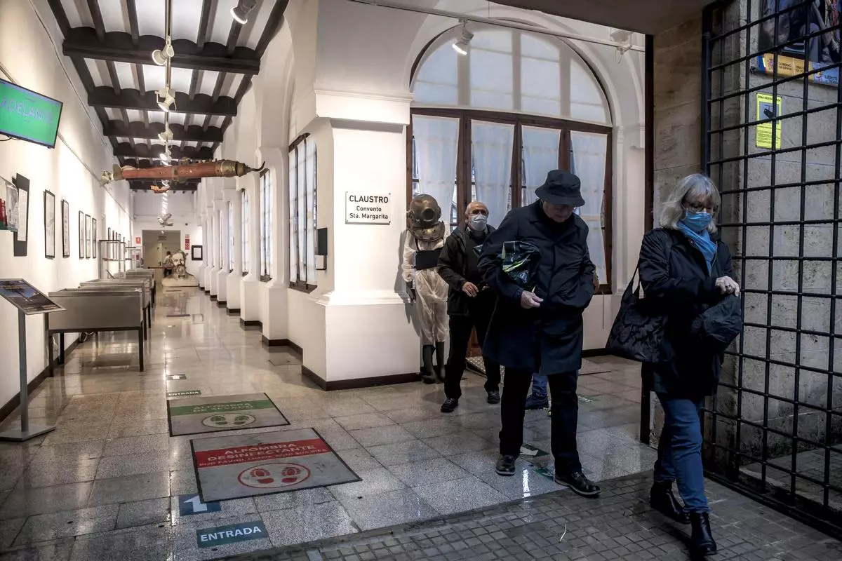 Un traje de buzo con escafandra da la bienvenida al fantástico mundo de Julio Verne en la exposición que se puede contemplar en el Centro de Historia y Cultura Militar de Baleares, en la calle Sant Miquel de Palma. Primeras ediciones de las obras del escritor, cartas que el francés envió al Arxiduc Lluís Salvador a lo largo de varios años, cuadernos originales de Jordi Ribot, traductor de sus novelas, maquetas de las máquinas descritas en los textos vernianos, incluso una recreación del camarote del Capitán Nemo son otras de las joyas reunidas en este espacio cultural.