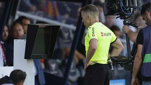 Hérnandez Hérnandez, árbitro de Primera División, recurre al VAR en el último clásico liguero.