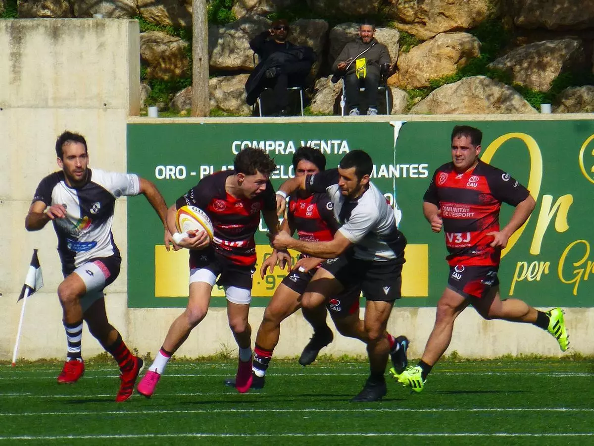 En lo que se refiere al Palma Unión, su rival le dobló en el marcador (38 a 19) y mostró su superioridad sobre la maltrecha cancha del Municipal de L'Hospitalet. Los locales, tras un arranque de partido tibio que les situó por detrás en el marcador (5-7, minuto 15), reaccionaron con rapidez y, a partir del ensayo de Harounne y la conversión de Pedro Rava, encendieron la mecha. Cuatro ensayos consecutivos de los catalanes dispararon la diferencia parcial hasta el 31 a 7 con el que se llegó al descanso, en el que además contó el Palma con el hándicap de la expulsión temporal de Mariano Carballo.
