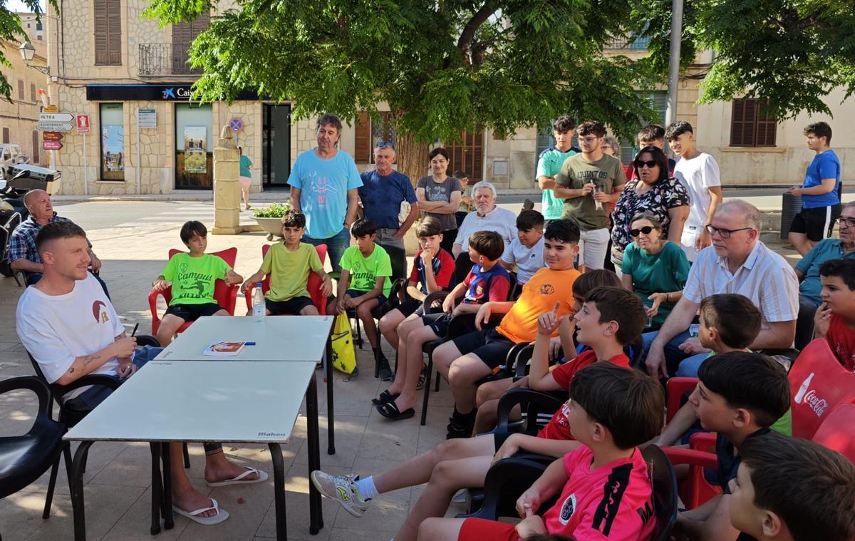 El mediocentro mallorquín del Olympiakos, Pep Biel, compartió un agradable tarde con varios niños de Sant Joan, que se convirtieron en 'periodistas' por un día