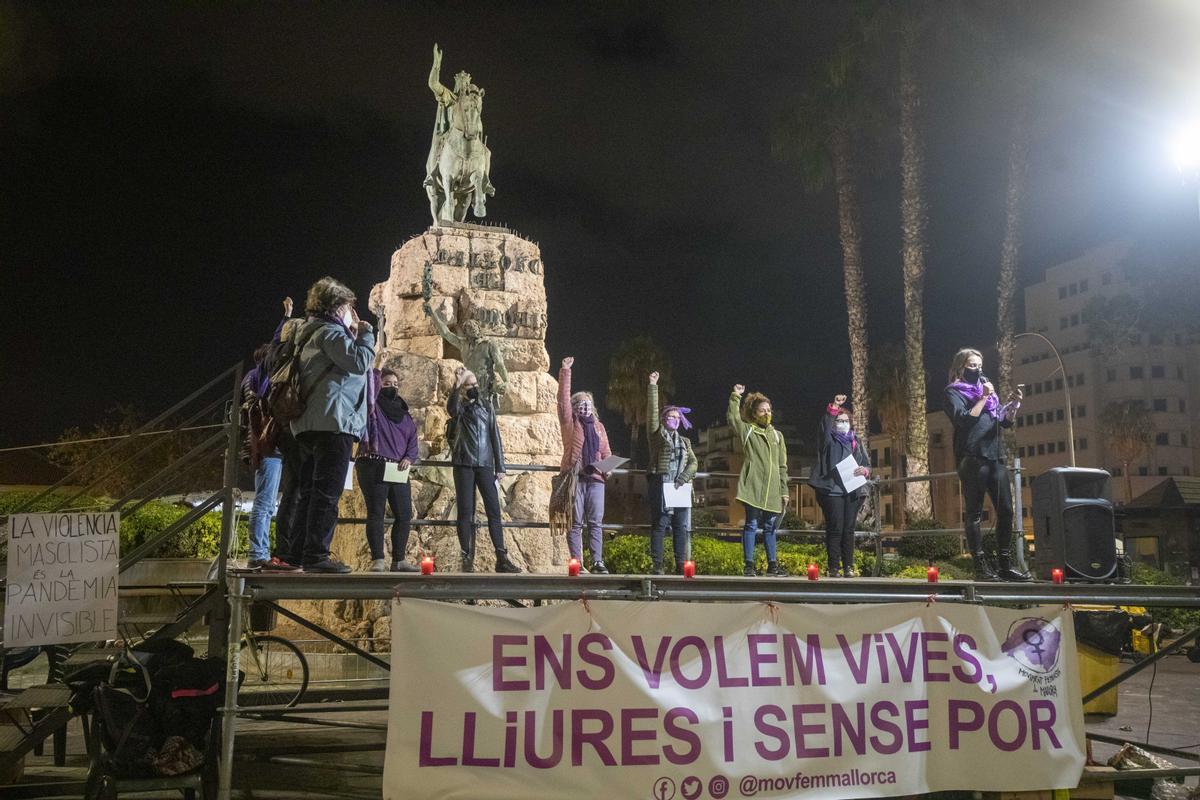 El movimiento feminista de Mallorca lee un manifiesto en la plaza de España de Palma por el 25N