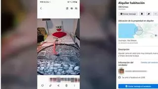 La arrendadora que pretende alquilar una cama en un salón comedor por 300 euros es muy activa como anunciante en Facebook; tiene más de 15 publicaciones con distintas ofertas de alquileres en Mallorca.