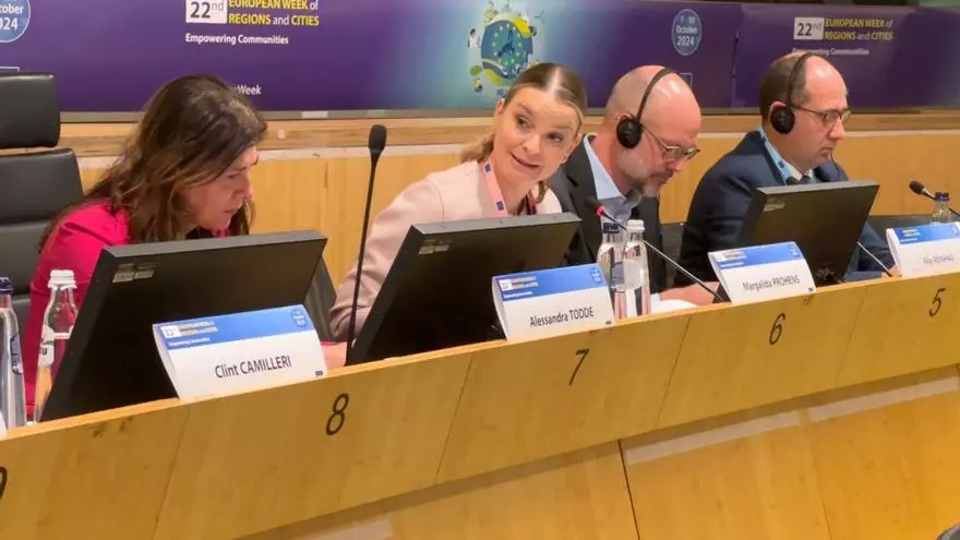 La presidenta del Govern, Marga Prohens, ayer durante su intervención en Bruselas. / CAIB