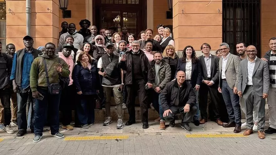 Personas migrantes, frente al Parlament junto a miembros del PSIB. | PSIB