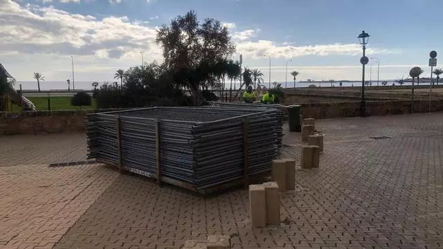 El Ayuntamiento de Palma ha empezado a instalar vallas al rededor de la plaza Llorenç Villalonga, donde se encuentran los dieciocho bellasombras que Cort pretende talar durante los próximos días.